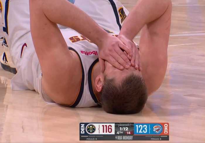 那次犯规时掘金116-123落后7分,约基奇两罚一中,继续发球之后他再中一记三分,将分差缩小至3分。