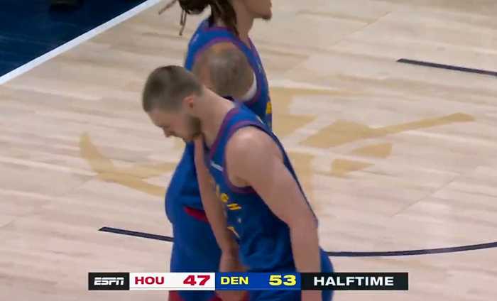 上半场结束,掘金53-47领先火箭。