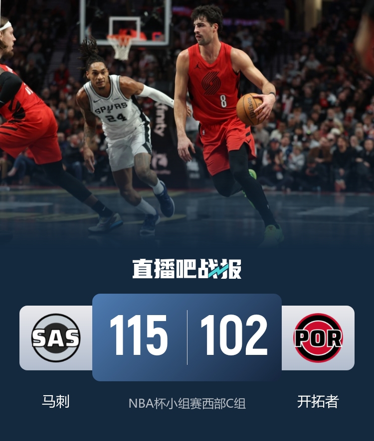 11月27日讯 NBA杯,开拓者今日迎战马刺,前者上场比赛战胜雄鹿,后者则是输给太阳,此役文班亚马、卡尔斯、霍勒迪和亨德森等人缺战,哈珀和夏普复出。
