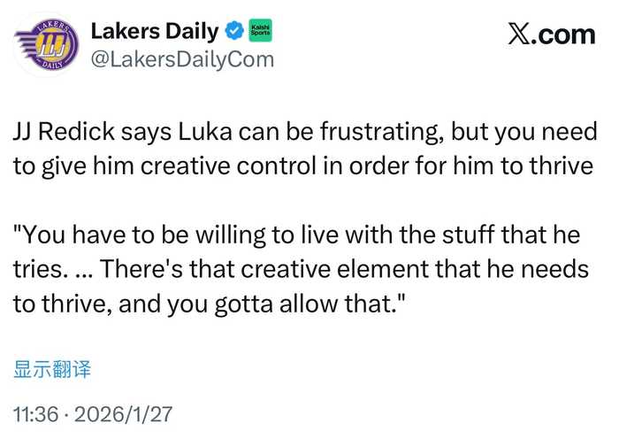 JJ·雷迪克表示,卢卡有时会让人感到沮丧,但必须给予他创造性掌控权,他才能真正闪耀。