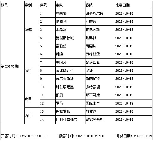 结束国家队比赛日,五大联赛重燃战火。周六传足胜负彩25146期两场重头戏引人关注:德甲迎来国家德比,拜仁主场迎战多特蒙德;意甲强强对话,罗马主场大战国际米兰。其他值得注意的还有英超曼城对阵埃弗顿,阿森纳则在德比中客场面对富勒姆。